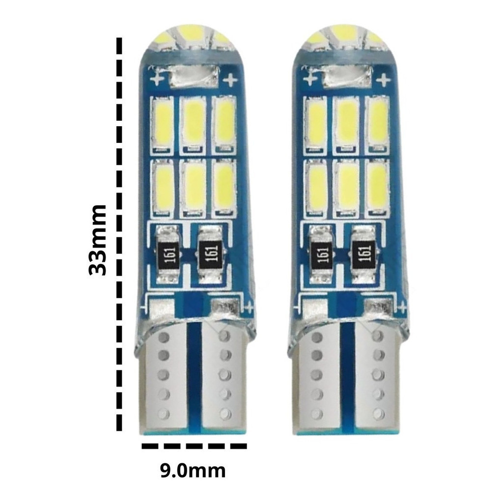 T10 Silicone 194 168 5W carro led sinal luzes da placa, de licença interior, cúpula porta lâmpadas. Características do produto: -15 ultra alto brilho 4014 leds têm uma longa vida. -Baixo consumo de energia e economia de energia. -Projetado como a lâmpada original direta do carro. **Contém polaridade** Tipo de soquete: T10/194/168/158/2825 Tensão: DC 12V Cor da luz: branco azulado. Chip de alto brilho 15SMD 4014 Desempenho estável. Aplicação: ótimo para a luz interior, luz da abóbada, luz do mapa, luz da porta, luz do tronco, luz da caixa de luva, luz da placa de licença, de lado, estacionamento, posição, etc. (Apenas para referência).