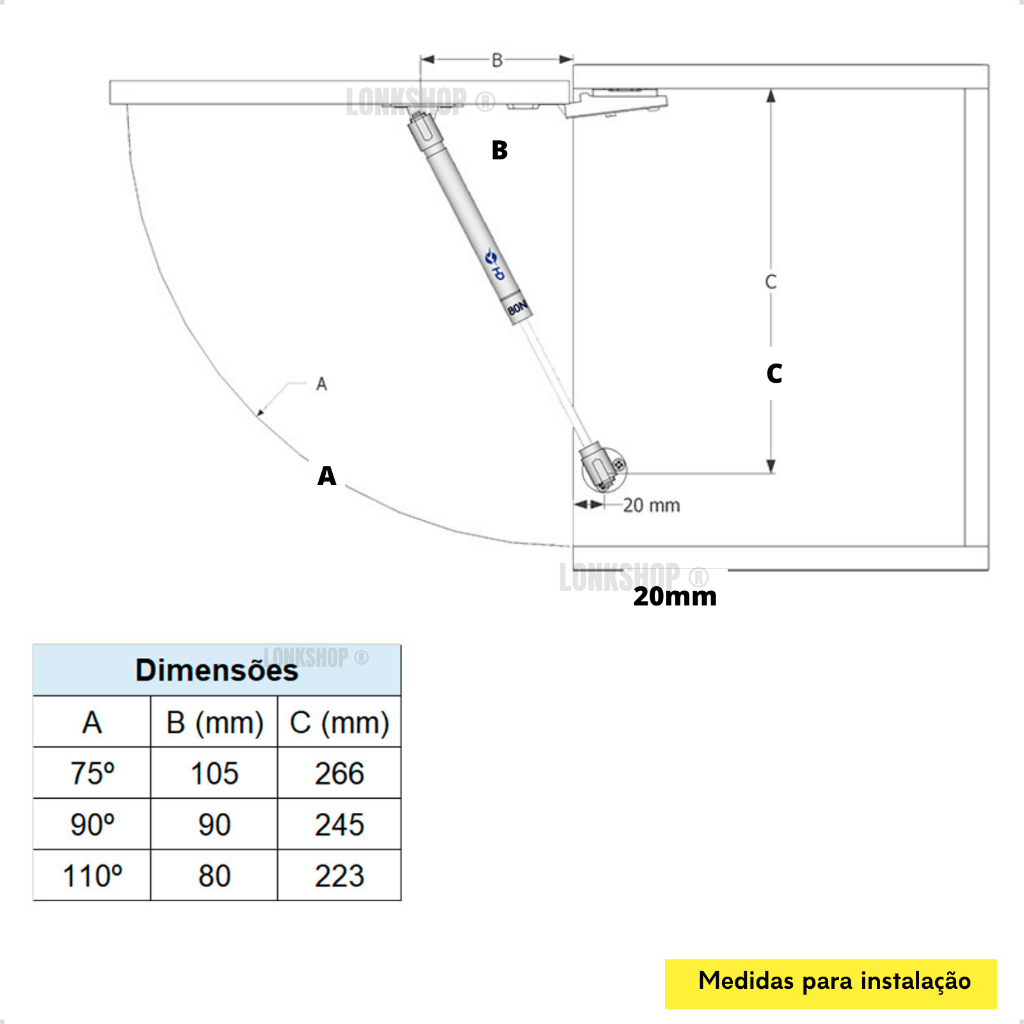 Kit 04 Pistão Amortecedor Armário de Cozinha Abre Para Cima