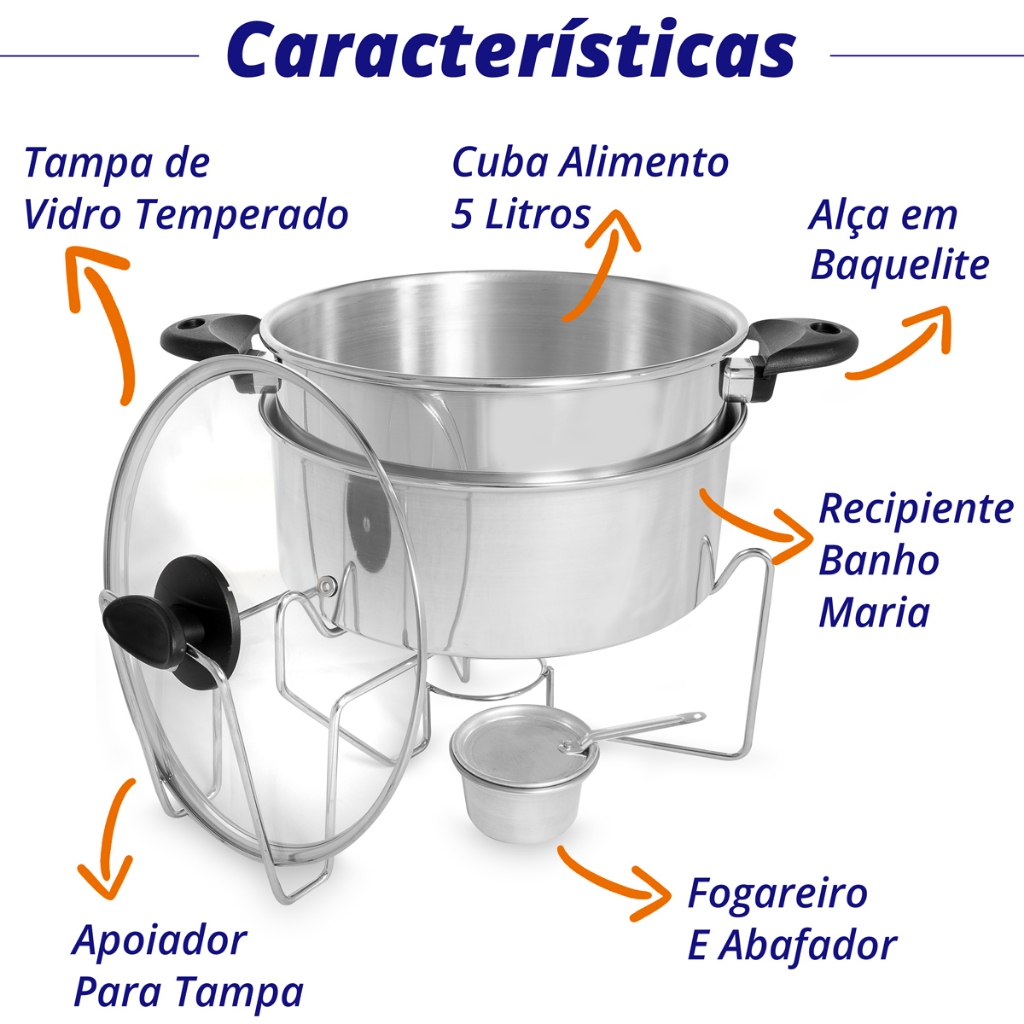 | Kit 04 Rechaud Banho Maria 5 Litros Alumínio Para Caldos Buffet Res... este produto | R$ 489,98 | 39% | 4.8/5 | 24 |