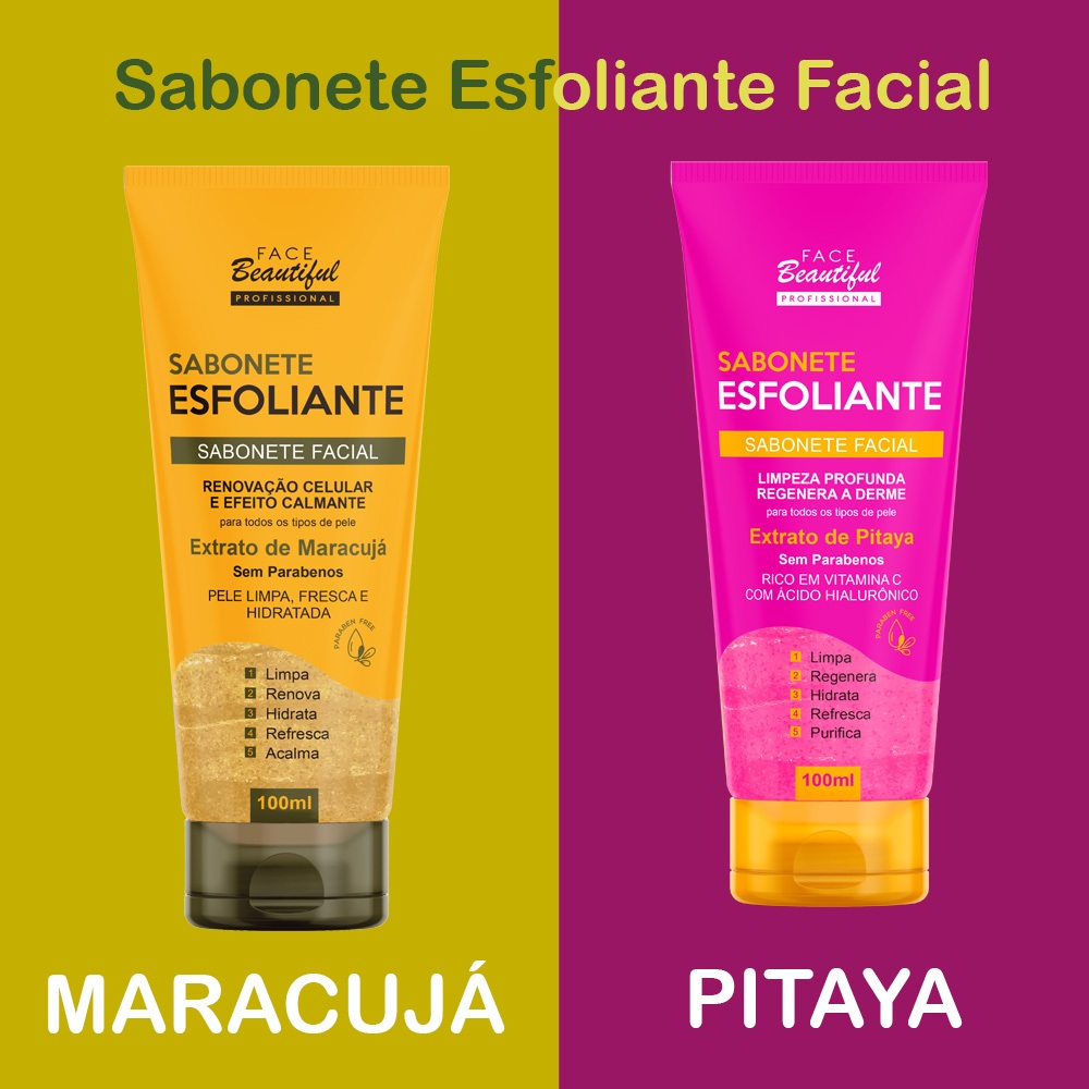 Kit 04 Sabonete Esfoliante Facial Face Beautiful 100ml O Sabonete Facial Esfoliante da Face Beautiful foi Desenvolvido para ajudar no Tratamento facial na renovação da Pele, eliminando as células mortas e impurezas liberando os poros, e melhorando a respiração cutânia. Sabonete Esfoliante Facial Maracujá 100ml Limpeza e renovação para uma pele radiante. Enriquecido com extrato de maracujá, proporciona renovação celular e efeito calmante, eliminando células mortas e impurezas, melhorando a respiração cutânea e a aparência dos poros. Sabonete Esfoliante Pitaya 100ml Tratamento completo para uma pele mais saudável. Contém extrato de pitaya, rico em vitamina C e ácido hialurônico, que proporciona limpeza profunda, regeneração da pele e hidratação intensa. Sabonete Esfoliante Morango 100ml Com esfoliação suave e fragrância adocicada, este sabonete limpa profundamente, removendo impurezas e células mortas.. Sabonete Esfoliante Lavanda 100ml Delicado e eficaz, este sabonete limpa profundamente a pele, removendo impurezas e células mortas graças às suas partículas esfoliantes suaves. Características: - O Extrato de Morango: Antioxidante, Vitamina c e Colágeno - O Extrato de Lavanda: Antioxidante e Adstringente - O Extrato de Pitaya : Rico em Vitamina C com ácido Hialurônico - O Extrato de Maracujá: Revolução Celular e Efeito Calmante - Para todos os Tipos de Pele - Limpa; Esfolia; Hidrata; Refresca e Suaviza a Pele - Sem Parabenos - Elimina Impurezas da Pele Modo de Uso: - Agite antes de Usar; - Aplique uma camada no Rosto; - Realizes movimentos circulares; - Enxágue com Água Corrente Contém: -01 Sabonete Esfoliante Facial Morango 100ml -01 Sabonete Esfoliante Facial Lavanda 100ml -01 Sabonete Esfoliante Facial Maracujá 100ml -01 Sabonete Esfoliante Facial Pitaya 100ml