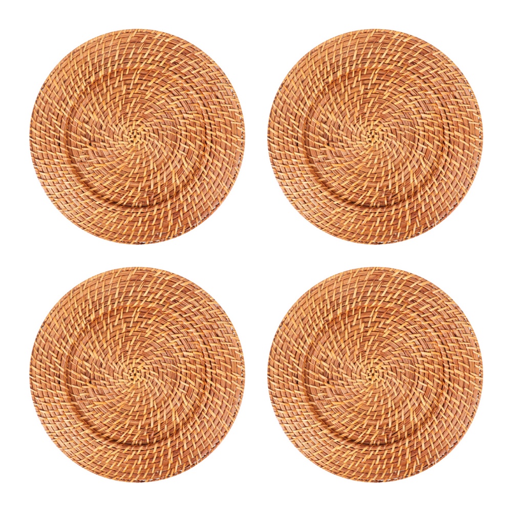 Kit 04 Sousplat Redondos em Rattan e Bambu Vietnã Artesanal Rústico Mesa Posta