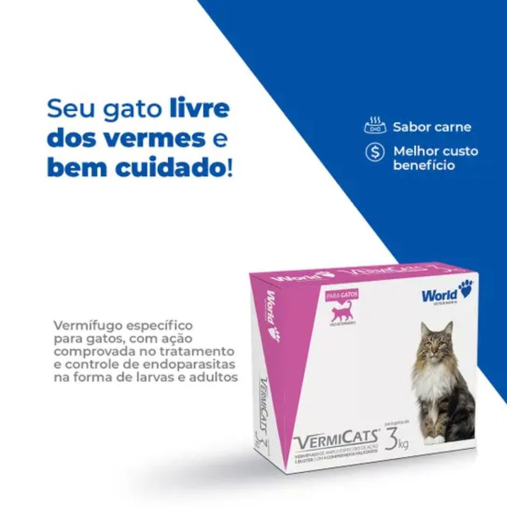 Kit 04 Vermicats 600MG 4 Comprimidos Vermífugo Para Gatos