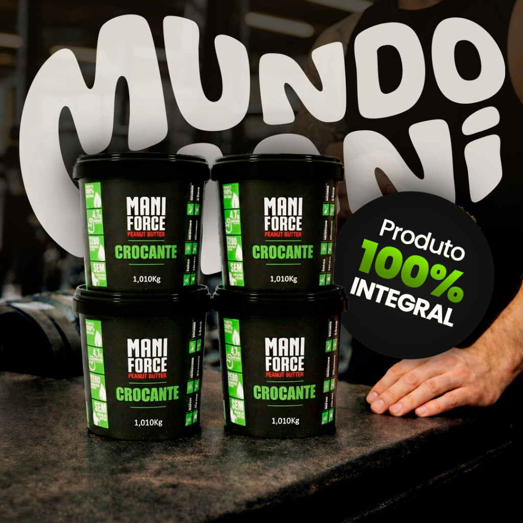 VALIDADE > Produtos tem validade de 01 ano após a fabricação. Trabalhamos com controle rigoroso de estoque e garantimos que irá receber os produtos faltando ao menos 07 meses para o vencimento. PODE CONFIAR! Para saber o valor do frete ou se tem o frete grátis e também o prazo de entrega, adicione ao carrinho e terá calculado automaticamente o valor e todas as informações. Nós vendedores não temos acesso as informações sobre valores e os prazos. Nesse anúncio a pasta de amendoim é Integral, sem adição de açúcar! Este sabor é 100% Amendoim, não tendo adoçantes e nem conservantes, apenas amendoim! PASTA DE AMENDOIM INTEGRAL CROCANTE Linha MANIFORCE 100% AMENDOIM Kit com 4 Potes 1,010Kg. ---------------------------------- INGREDIENTES: -Amendoim Torrado. Para maiores informações (Tabelas nutricionais, etc.) pedimos que confira as imagens de cada um dos produtos. Produto 100% Integral ZERO conservante! ZERO gorduras trans! Zero Açúcar! Livre de glúten! Zero Lactose! ----------------------------------------------- Qualidade Garantida! Com Laudo de Qualidade na embalagem (QRCODE).