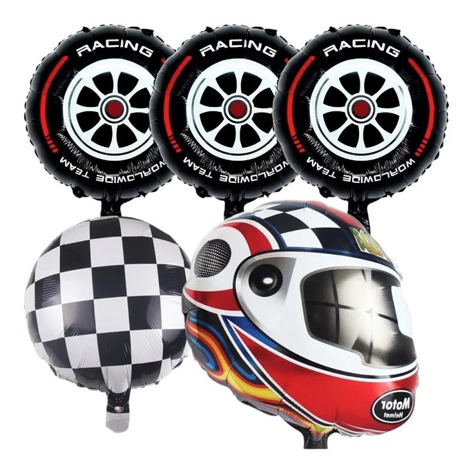 Kit 05 Balões Metalizados Corrida Fórmula 1 - Tema Fórmula 1 Corrida de Carros Pneus Rodas