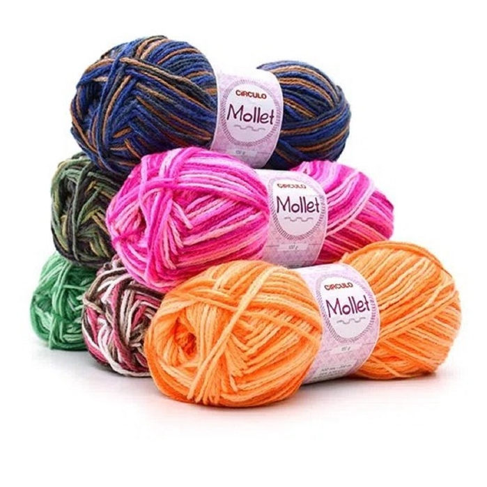 Kit 05 Fio de Lã Mollet 40g TEX 500 - Pacote Fechado - Crochê Circulo