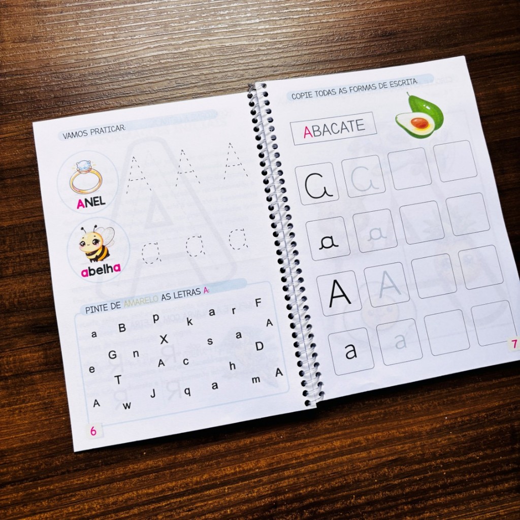 São 5 Apostilas FÍSICAS, impressas com insumos de muita QUALIDADE. Proporcionando COR, APRENDIZAGEM e DIVERSÃO na medida certa. MEDIDAS: Tamanho PEQUENO A5 (21x15 cm) LIVRO 1 - CONHECENDO AS VOGAIS >> CONTÉM << ▪ Capa; ▪ 50 páginas Com esta apostila a criança vai conhecer as VOGAIS, são elas: A, E, I, O, U. LIVRO 2 - CONHECENDO AS CONSOANTES >> CONTÉM << ▪ Capa; ▪ 78 páginas - 123 atividades Com esta apostila a criança vai conhecer as consoantes, são elas: B, C, D, F, G, H, J, K, L, M, N, P, Q, R, S, T, V, W, X, Y, Z. LIVRO 3 - ALFABETO PONTILHADO >> CONTÉM << ▪ Capa; ▪ 29 páginas - total de 52 atividades. Com esta apostila a criança vai conhecer as letras do alfabeto, são elas: A, B, C, D, E, F, G, H, I, J, K, L, M, N, O, P, Q, R, S, T, U, V, W, X, Y, Z. LIVRO 4 - NÚMEROS PONTILHADOS >> CONTÉM << ▪ Capa; ▪ 23 páginas - total de 40 atividades. Com esta apostila a criança vai conhecer e montar os números, são eles: 1, 2, 3, 4, 5, 6, 7, 8, 9, 10. LIVRO 5 - APRENDA CORES >> CONTÉM << ▪ Capa; ▪ 44 páginas Com esta apostila a criança vai conhecer as principais CORES, são elas: Amarelo, Azul, Vermelho, Roxo, Laranja e Verde. >> NOSSO DIFERENCIAL<< ▪ Acabamento em ESPIRAL: Facilita o manuseio na hora de realizar as atividades; ▪ Capa e Contracapa Plástica: Protege o livro, podendo ser guardado como lembrança, sem danificar o miolo; ▪ Folhas + Grossas e de Qualidade: As folhas são da marca CHAMEX ou REPORT de gramatura 90. O sulfite de maior qualidade disponível no mercado, possibilitando que a criança utilize diferentes materiais sem danificar as folhas. Exemplo: canetinhas, tintas, colas, entre outros. >> Colorida, Divertida e Objetiva NA MEDIDA CERTA << ▪ Todo o conteúdo foi pensado em passar um aspecto LIMPO e CLEAN. Sem bordas floreadas, mantendo o foco da criança na atividade e seu conteúdo. Com cores colocadas de forma inteligente e estratégica, não deixando de fora a diversão. ▪ Suas instruções são CLARAS e OBJETIVAS, não deixando dúvidas no que fazer em cada liçãozinha. Por conta de todas essas qualidades, este material é muito indicado para crianças do Espectro Autista, TDA, TDAH e/ou com dificuldades de aprendizagem. Também indicado para alfabetização de JOVENS e ADULTOS. Arte elaborada por profissional ESPECIALIZADA e com PRÁTICA na área de alfabetização em educação infantil e educação especial. Unindo conhecimento teórico e prático. ARTESANATO PEDAGÓGICO - Sempre pensando em cada criança e seu modo único de ser!