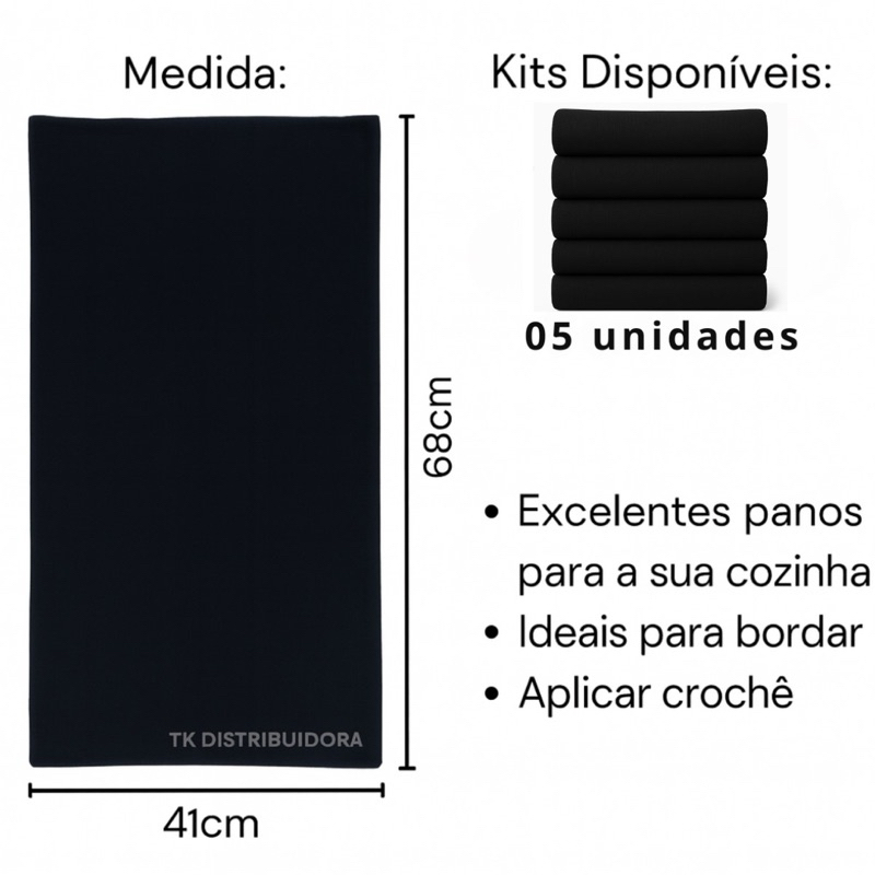 Kit com 5 unidades Panos de Prato 100% Algodão Pé de Galinha Pano de Prato com excelente absorção para o seu dia dia na cozinha. Qualidade tipo pé de galinha. Ideais para bordar, aplicar bico de crochê, etc. INFORMAÇÕES DO PRODUTO: - Medida: 41cm largura x 68cm comprimento. - Material: 100% Algodão - Cores: Rosa - Verde - Vermelho - Azul - Preto - Costura reforçada Dúvidas Frequentes - - É pé de galinha ? Sim. - É 100% Algodão ? Sim. - Possui bainhas? Sim, bainhas laterais com costura reforçada. Qualquer dúvida, entre em contato pelo campo de mensagens que teremos o prazer de atendê-lo.