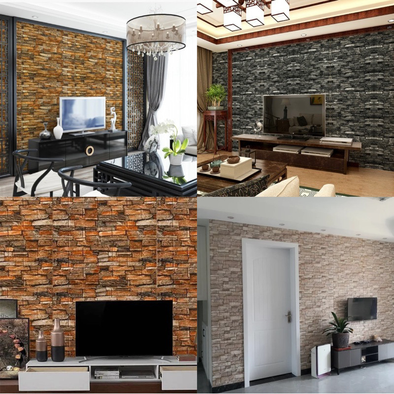 Kit 05 Placa Papel 70x77 cm Espessura 3mm 3D De Parede Espuma Tijolo Auto Adesivo Aplique Fácil