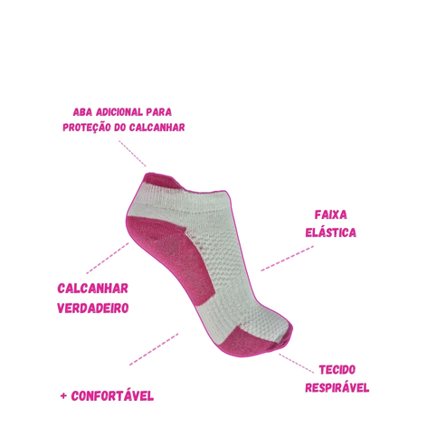 Kit 06 pares Meia Feminina Cano Curto Algodão 35 a 37 protetor de calcanhar e calcanhar verdadeiro