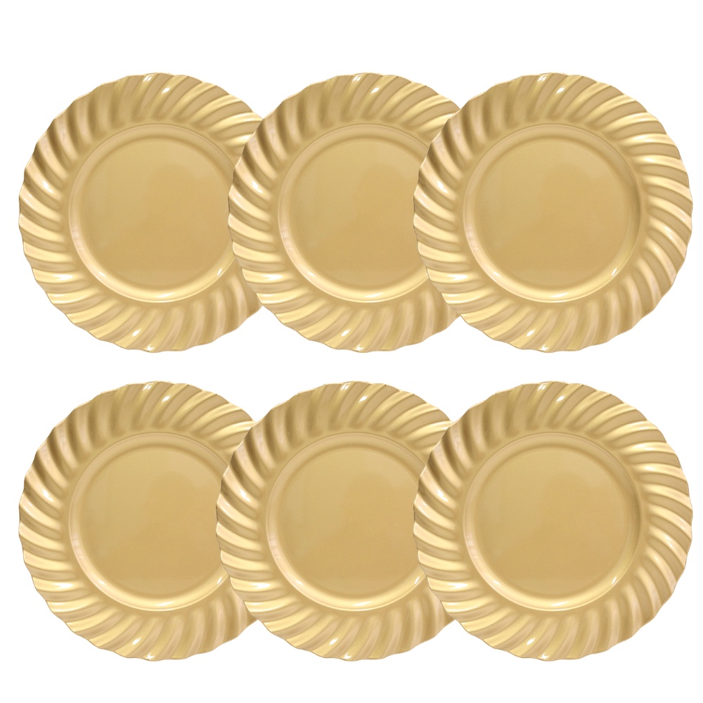 Kit 06 Sousplat Redondo Borda Waves Dourado Polipropileno 33 cm Ondas Mesa Posta Chique