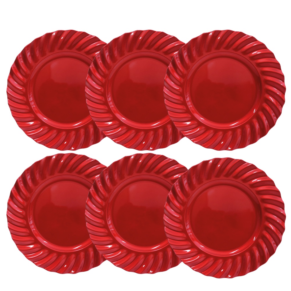 Kit 06 Sousplat Redondo Waves Vermelho em Polipropileno 33 cm Mesa Posta Chique