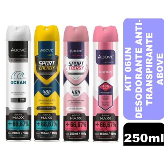 | Kit 06un Desodorante Aerosol Antitranspirante Above 250ml este produto | R$ 65,96 | — | 5.0/5 | 9 |