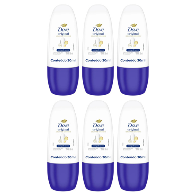 | Kit 06un Desodorante Antitranspirante Roll-On Dove Original 72h 30ml este produto | R$ 52,97 | — | 4.8/5 | 24 |