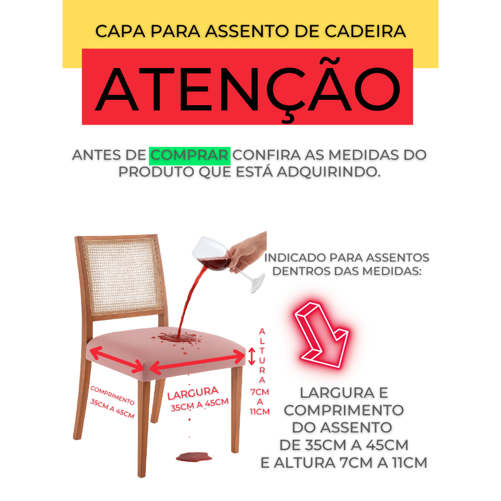 Olá, somos A JOHN SEVEN - DECOR - UMA LOJA OFICIAL KIT 08 CAPAS DE ASSENTO HIDRO-REPELENTE ************************************************************************************************************ As capas para assento possuem diversas possibilidades para seu ambiente, tornando-o mais elegante e confortável, além de esconder imperfeições. Para mudar o visual da sua sala de jantar, a capa para assento de cadeira é um item indispensável em sua decoração, além de proporcionar um maior aconchego e comodidade e tampar certas imperfeições indesejadas em seu móvel, e também renova seu espaço gastando pouco. Diversas possibilidades para seu ambiente! Se adapta em diversos tipos de cadeiras. Renove e proteja suas cadeiras com estilo e praticidade! Nossa capa para assento de cadeira em malha suplex hidro-repelente é a solução perfeita para quem busca conforto, durabilidade e modernidade. Tecido de alta qualidade – malha suplex macia, elástica e resistente. Hidro-repelente – protege contra líquidos, evitando manchas indesejadas. Ajuste perfeito – confeccionada com elástico, ela se adapta a diversos modelos de cadeira. Fácil de lavar – praticidade no dia a dia. Design sofisticado – ideal para renovar ambientes sem gastar muito. Escolha as suas e arrase na decoração! Conteúdo da embalagem: 08 capas para assento de cadeira liso ou estampada - HIDRO - REPELENTE - REPELE A AGUA. BENEFÍCIOS: -Fácil lavagem e secagem, pode ser lavado em máquina -Fácil instalação - Instale voce mesmo com muita facilidade -Renova suas cadeiras -Transforma os ambientes -Seca Rápido -Não Precisa Passar -Produto com excelente qualidade; -Elástico em toda volta -Possui Feicho em elástico SUPER RESISTENTE -Se adapta muito bem a sua cadeira; -Antialérgico; -As Capas não deformam após a lavagem. - Impermeável Hidro Repelente - NOVIDADE NO MERCADO (Lançamento) COMPOSIÇÃO: 93% Poliéster 7% Elastano Indicada para cadeiras com as seguinte medidas: MEDIDAS: Largura do assento: 35-45 cm Comprimento do assento: 35-45 cm Altura MÁXIMA 11CM INSTRUÇÕES DE CONSERVAÇÃO: -Lavar em temperatura máxima de 30ºC -Não usar alvejante -Proibido usar secadora -Secar pendurado sem torcer -Passar em Ferro no máximo de 110ºC -Não lavar a seco Imagem Meramente Ilustrativa. Atenção: Pode haver Variações das Cores de Acordo com a Calibragem de Cada Monitor. Em caso de devolução ou troca o produto deve ser devolvido em sua embalagem original sem sinais ou marcas de uso, fora destas condições o produto será devolvido e não trocado.