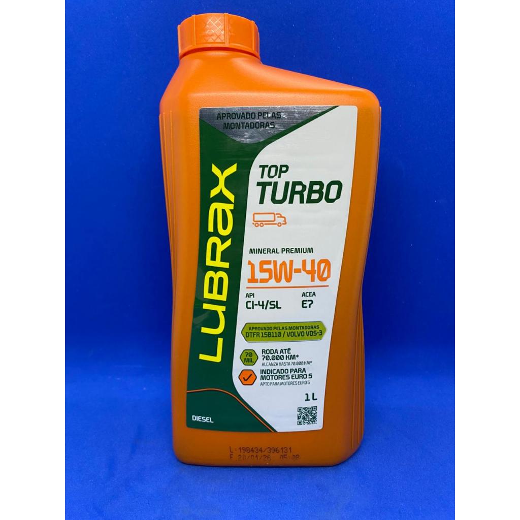 Kit com 8 litros. O Lubrax Top Turbo 15W-40 é um óleo mineral de alto desempenho para motores diesel pesados, atendendo à especificação ACEA E7 e API CI-4/SL. Recomendado para motores com EGR, proporciona alta proteção contra desgaste, controle de fuligem e excelente limpeza, sendo ideal para serviços rodoviários, urbanos ou fora-de-estrada. Características e Benefícios: Classificações: ACEA E7, API CI-4/SL, Global DHD-1. Aprovações: Volvo VDS-3, Mercedes-Benz 228.3, MAN 3275-1, MTU Categoria 2, Renault RLD-2, Mack EO-N, Cummins CES 20078, Caterpillar ECF-2/ECF-1a. Viscosidade: SAE 15W-40. Aplicação: Caminhões, ônibus, tratores e máquinas agrícolas de diversas marcas, como Scania, Mercedes-Benz, Volvo, Ford, Cummins e Caterpillar. Proteção: Formulado para uso em motores de baixas emissões (equipados com EGR). Desempenho: Oferece excelente controle da viscosidade e limpeza do motor, ideal para serviços severos. Este lubrificante é amplamente utilizado por frotistas devido à sua confiabilidade e conformidade com os principais requisitos da indústria de veículos pesados. Vibra Observação: Certifique-se de verificar se o manual do fabricante do veículo recomenda o padrão ACEA E7 e a viscosidade SAE 15W-40 antes da aplicação. Quem somos nós? PEÇA CAR, a sua mais nova AUTO PEÇAS! Atendimento e entrega rápida. Produtos NOVOS com GARANTIA de 90 DIAS. Não nos responsabilizamos por mau uso, então, se necessário, recomendamos que a instalação seja feita por um profissional especializado. Em caso de dúvidas em relação ao produto ou os veículos aplicáveis, entre em contato!