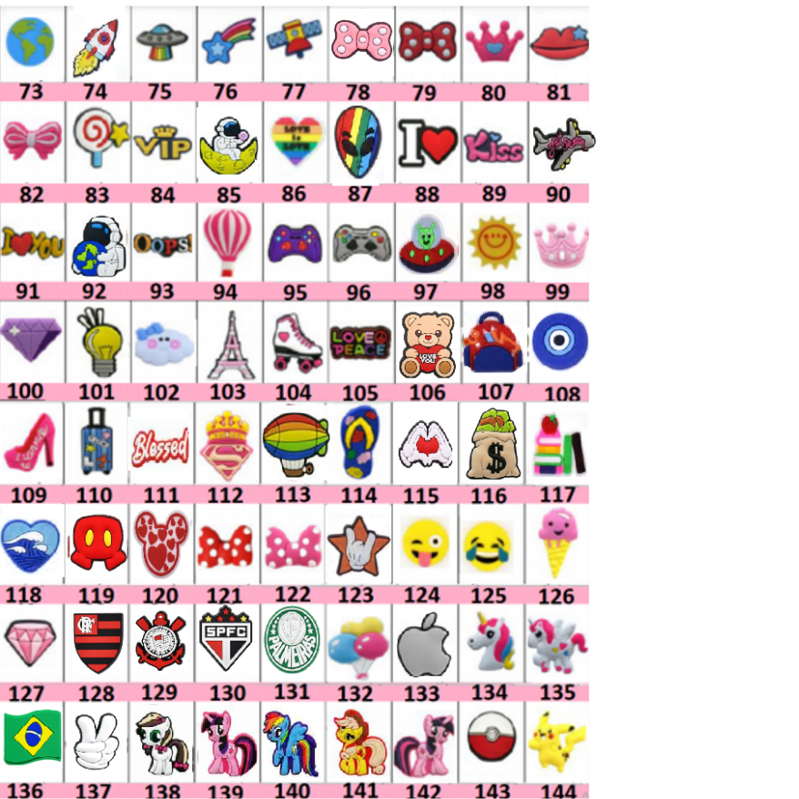 | 100 Estilos Diferentes Sapatos Encantos DIY Tamancos Sapato Aceesso... | R$ 1,60 | 90% | 4.9/5 | 3.8 mil |