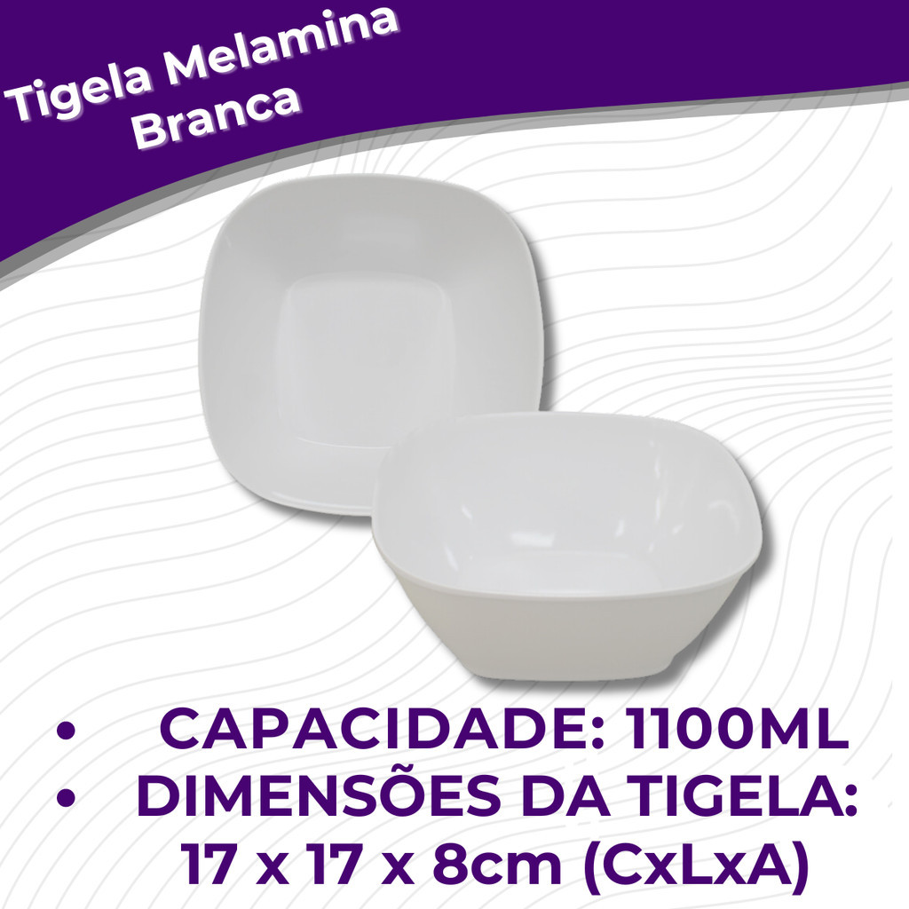 Tigela Quadrada Lisa de Melamina Branca: - A tigela é feita com melamina, material leve e resistente; - A melamina é um tipo de resina similar ao plástico, que resiste a altas temperaturas e não quebra com facilidade; - MELAMINA 100%, de alta qualidade, fabricada com tecnologia de ponta, proporcionando alta durabilidade e um excelente custo benefício; - A Melamina 100% é própria para alimentos, sendo utilizada por Chefs de todo o mundo, garantindo beleza as seus pratos e harmonia na sua mesa; - É um produto de fácil manuseio, lavagem e transporte, garantindo a segurança do usuário em possíveis quebras ou lascas; - Utilizar somente água e sabão neutro. Não utilizar produtos abrasivos e solventes; - Tendência mundial, os pratos apresentam mais brilho e podem ir à lava louças; - NÃO PODEM SER LEVADOS AO MICRO-ONDAS OU FORNO! Marca: - Bestfer Dimensões: - Comprimento: 17cm; - Largura: 17cm; - Altura: 8cm. - NÃO PODEM SER LEVADOS AO MICRO-ONDAS OU FORNO! - AVISO: Não exceda à temperatura de 40°C. KIT COM 8 UNIDADES