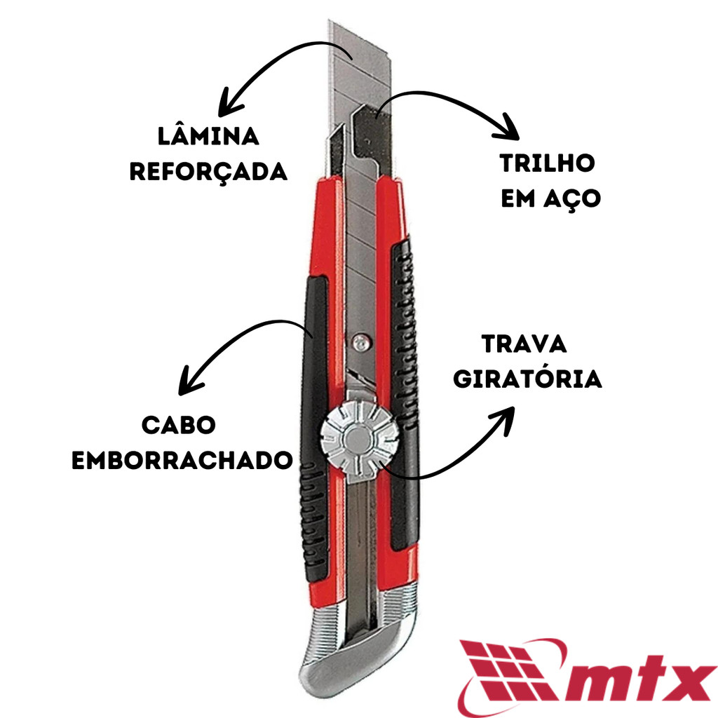 Kit 1/2/3/4/5UN Estilete Profissional MTX + Kit 10 Lamina para Estilete 18mm Estilete Emborrachado