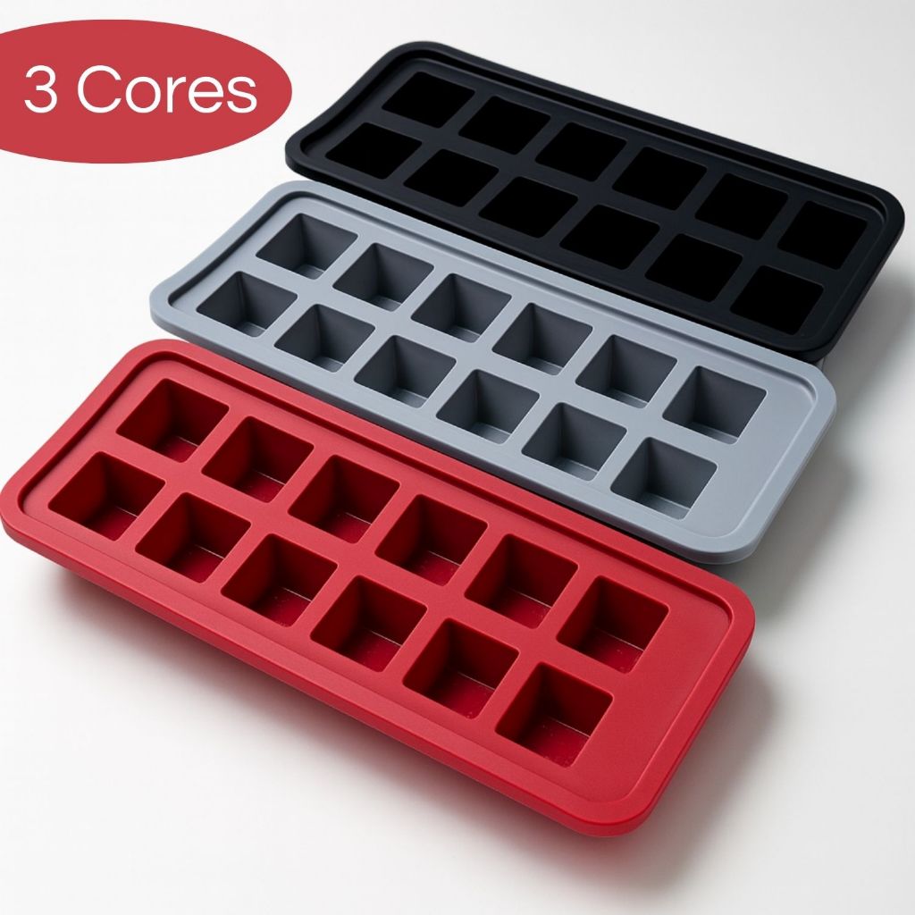 Kit 1 / 2 / 3 Forma de Gelo Quadrado Silicone com 12 Cavidades Grande Bebida Gelada Fácil de Soltar