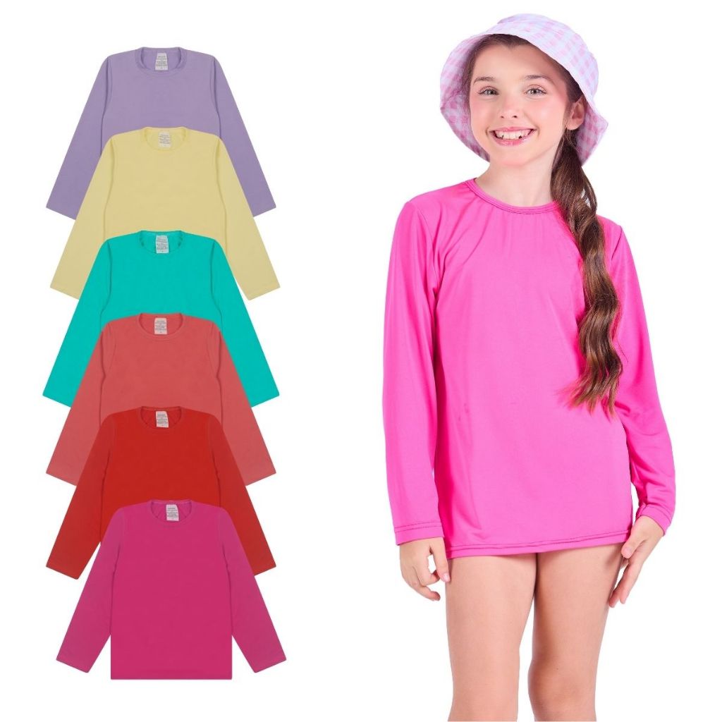 Kit 1, 2, 3 ou 4 Camiseta Termica Infantil Menina Proteção Solar Moda Praia Feminina Manga Longa