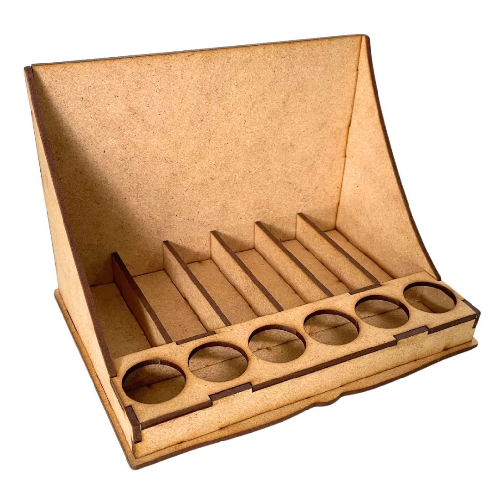 Kit Expositores de MDF para Amostras e Produtos Descrição do Produto: Kit 1, 2, 3 ou 4 expositores em MDF cru 3mm, cortados a laser com encaixe preciso e acabamento limpo. Ideal para apresentar amostras e produtos em feiras, comércios ou balcões de atendimento. 📦 Especificações Técnicas: - Material: MDF cru 3mm (sem pintura); - Corte: A laser – encaixe perfeito, sem rebarbas; - Produto enviado desmontado; - Montagem por encaixe + fixação com cola branca ou instantânea (não inclusas); - Pode ser necessário fita crepe para fixação temporária até a secagem. 📐 Medidas da Peça Montada (por expositor): - Comprimento (frontal): 19,8 cm I Largura (profundidade): 14,5 cm I Altura total: 13 cm; - Furos frontais: 6 furos (Ø 2,8 cm cada) I Divisórias internas: 6 compartimentos (2,85 x 8,85 cm cada). 👉 Capacidade sugerida: - 6 amostras (na frente) I Até 18 produtos (3 por compartimento). 🚚 Envio e Prazos: - Produto leve e compacto para reduzir custo de frete.