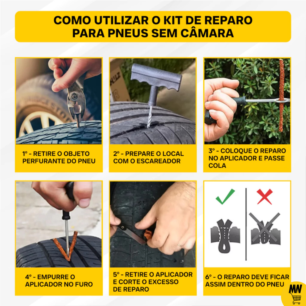| Kit Reparo Pneu Sem Camara Carro E Moto Refil Selante Remendo Macarrão | R$ 7,99 | 53% | 4.9/5 | 4 mil |
