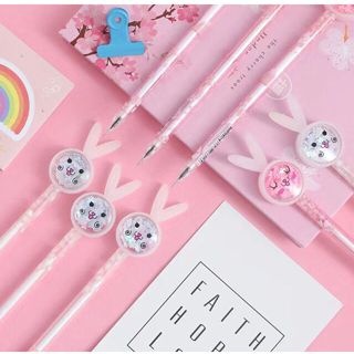KIT 1/2/4 Canetas de gel 0.5mm ponta fina preto tinta com Coelho rosa/branco e Lantejoulas