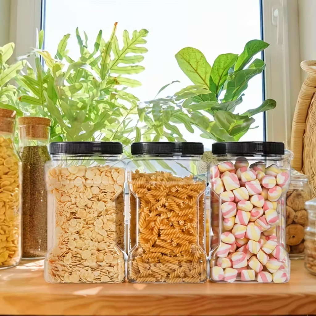Organize sua cozinha com mais praticidade e segurança com o Kit de Potes Herméticos Transparentes com Tampa Rosqueável. 2200ml (12,5 x 12,5 x 19 cm) – cada kit conta com 4 unidades, ideais para armazenar desde alimentos básicos até guloseimas e snacks. Produzidos em plástico resistente e inquebrável, diferente do vidro e do acrílico, os potes são livres de BPA, garantindo muito mais segurança para armazenar alimentos como arroz, feijão, café, açúcar, massas, bolachas, batata chips, balas e chocolates. A tampa rosqueável oferece vedação segura e prática, protegendo contra umidade, insetos e odores, além de manter seus alimentos sempre frescos por mais tempo. Perfeitos para quem busca organização, durabilidade e design clean, os potes podem ser usados em cozinhas, despensas, armários e até mesmo em escritórios para organizar guloseimas e pequenos itens. ✅ Vantagens e Benefícios Kit com 4 unidades em cada variação Material inquebrável – mais seguro que vidro e acrílico Livre de BPA – ideal para contato com alimentos Tampa rosqueável com vedação hermética Design moderno e transparente – fácil visualizar o conteúdo Fácil de limpar e reutilizar