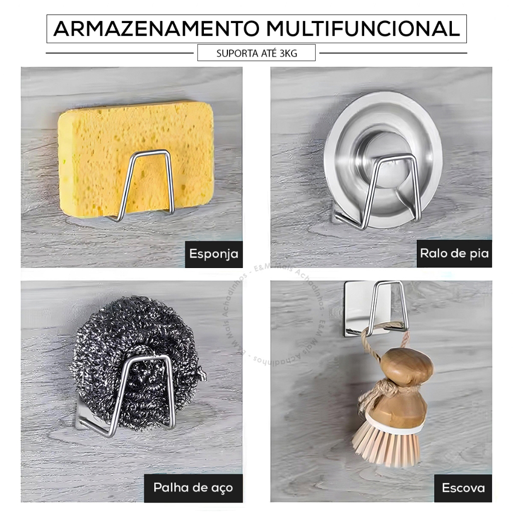 Kit 1 2 4 Suporte Esponja Aço Inoxidável Bucha Pia Prateleira Cozinha Armazenamento Parede Multiuso
