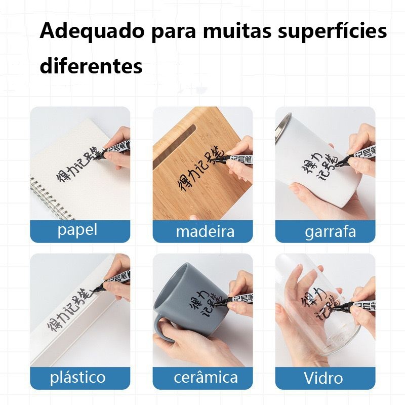 PRODUTO A PRONTA ENTREGA. Envio imediato. MONTE SEU KIT Canetas Ponta Fina Marcador Permanente Metal Plástico Vidro Papel Madeira Basta selecionar quantas deseja no ato da compra, é rápido e fácil. Os Marcadores Permanentes da Brasfort são ideais para marcar, riscar ou pintar de forma fixa em diversas aplicações. Estão disponíveis nas cores: vermelha, azul e preta com pontas finas ou chanfradas. - Ponta Fina faz linha de 2mm; - Ponta Chanfrada faz com a mesma ponta, linha de 2mm e linha de 4mm; Aplicação: Pode ser usado em casa, no escritório ou na indústria. A escolha certa para marcar, riscar ou pintar superfícies lisas como: - Papel; - Papelão; - Plástico; - Vidro; - Metal; - Acrílico; - Madeira; Além disso: - Sua tinta é de secagem rápida; - Não é tóxica; - Não tem cheiro; - Resistente a água; - Não mancham; - Não borram;