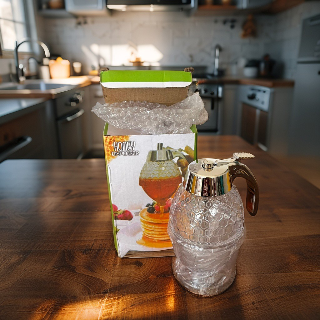 MELEIRA HONEY DISPENSER - O estilo que faltava para a sua Mesa Posta Sirva mel de forma elegante, sem respingos e sem bagunca. A Meleira Honey Dispenser foi criada para quem valoriza cada detalhe da experiencia gastronomica em casa. Seu design em formato de colmeia se destaca em qualquer mesa e transforma um gesto simples em um momento especial. ### DIFERENCIAIS DO PRODUTO ### Design Colmeia: Inspirado na natureza, traz charme e sofisticação a sua mesa Sistema Antigotejamento: Dosador inteligente que dispensa na medida certa, sem escorrer Acrílico Premium Transparente: Permite visualizar a cor e a textura do mel Tampa Roscável com Rolha de Silicone: Facilita o enchimento sem vazamentos Capacidade de 200ml: Tamanho ideal para uso diário Fácil Limpeza: Material resistente que não absorve odores nem manchas Versátil: Use também para melados, caldas, agave, xaropes e molhos ### ESPECIFICACOES TECNICAS ### Material: Acrílico cristal de alta resistência Capacidade: 200ml Cor: Transparente Sistema: Dosador antigotejamento Tampa: Rosqueável com rolha de silicone Design: Colmeia texturizada Limpeza: Agua morna e detergente neutro ### O QUE VEM NA COMPRA ### De acordo com a Variação Escolhida Unitária: (1 unidade ou 2 unidades) 1x ou 2x Meleira dispenser de acrílico 200ml 1x ou 2x Tampa roscável 1x ou 2x Rolha de silicone para enchimento 1x ou 2x Suporte de descanso e escorrimento O Kit 6 Unidades e ideal para quem deseja montar uma mesa posta completa, presentear em datas especiais ou revender. ### COMO USAR ### Abra a tampa rosqueável girando no sentido anti-horário Insira a rolha de silicone na parte inferior do dosador Preencha com mel ou liquido de sua preferencia ate 200ml Rosqueie a tampa firmemente Remova a rolha de silicone e o dispenser esta pronto para uso Pressione suavemente o dosador para dispensar a quantidade desejada Após o uso, limpe com agua morna e detergente neutro Importante: Sempre use a rolha de silicone ao encher para evitar que o mel escorra pelo dosador. Caso perca a rolha utilize outro objeto ou o dedo para vedar o fundo somente até o preenchimento. ### IDEAL PARA PRESENTEAR ### Perfeito para noivas montando enxoval, mães que adoram receber em casa, amantes de decoração, chás de panela e inauguração de apartamento. O kit com mais unidades sai com melhor custo-benefício para presentes ou para compor toda a sua mesa. ### DICAS DE USO ### Variedade de líquidos: Melado de cana, caldas de chocolate, caramelo ou morango, xarope de agave ou bordo, geleia liquida e molhos doces. Conservação: Mantenha longe de luz solar direta para preservar as propriedades do mel. Limpeza: Para líquidos muito viscosos, lave com agua morna logo após o uso para facilitar a higienização. ### GARANTIA DE QUALIDADE ### Material atóxico e seguro para alimentos. Produto testado e aprovado. Embalagem reforçada para transporte seguro. Politica de troca e reembolso transparente. Compre com tranquilidade.