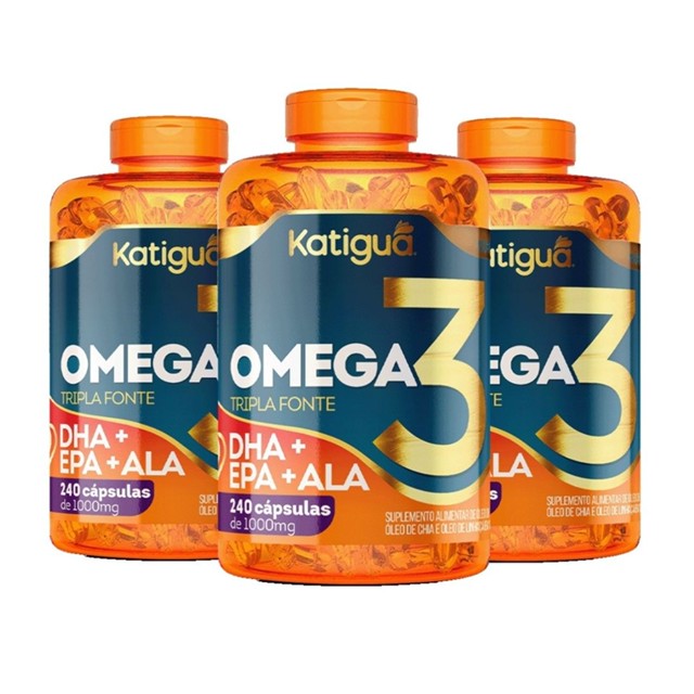 Kit 1, 2 ou 3 Pote Ômega 3 1000mg 240 capsulas Tripla Fonte Katiguá