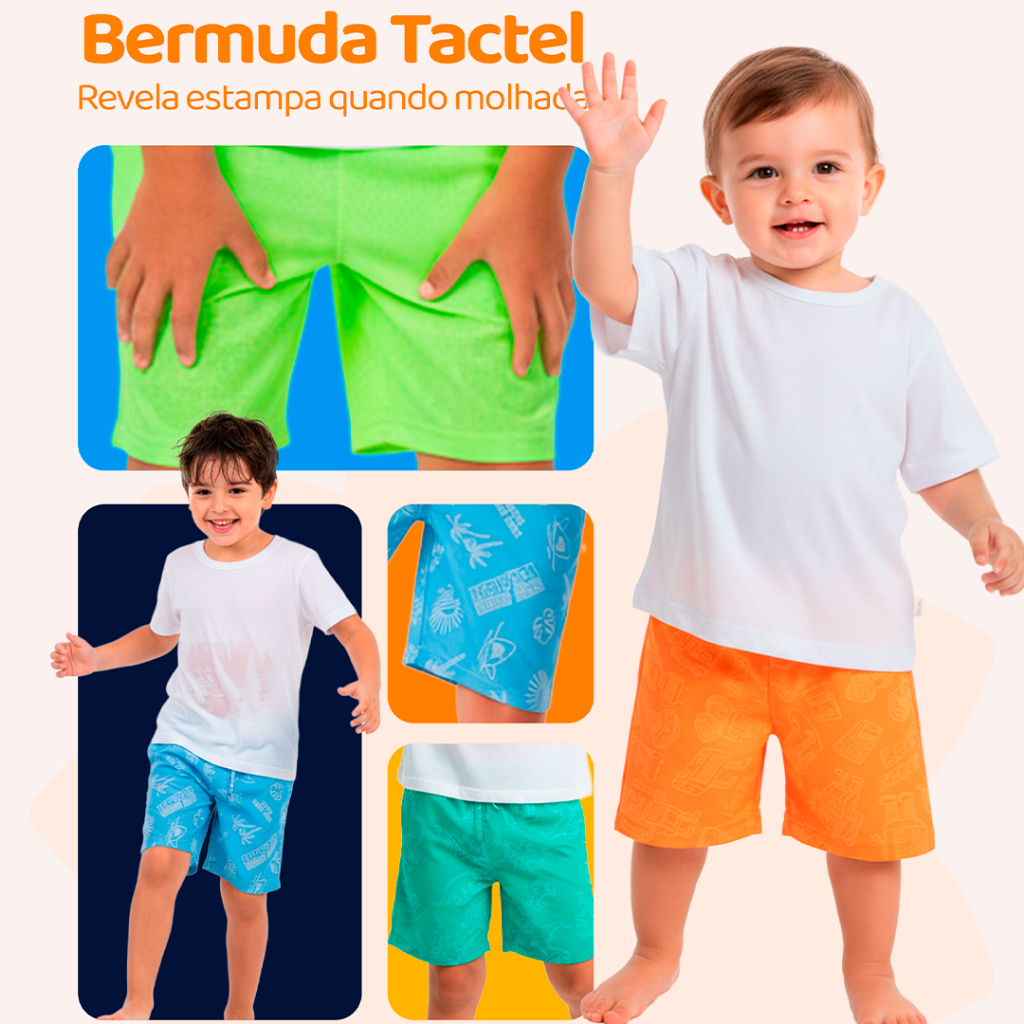 Os kits de Bermudas Mágicas Tactel foi feito para surpreender as crianças! Quando entra em contato com a água, a estampa aparece, deixando o look muito mais divertido para piscina, praia e brincadeiras no calor. Leve, fresca e de secagem rápida, é a peça ideal para o dia a dia dos pequenos. Destaques do Produto - Efeito mágico: revela a estampa quando molhada - Tecido Tactel 100% Poliéster – leve, resistente e confortável - Secagem rápida – perfeita para praia e piscina - Cós com elástico rebatido – ajuste seguro e confortável - Modelagem tradicional – liberdade total de movimentos - Estampas e cores alegres que combinam com o universo infantil - Ideal para dias quentes, passeios e lazer Observação: este modelo não possui cordão decorativo. Tabela de Medidas Use as medidas abaixo como referência. Podem ocorrer pequenas variações conforme o lote e o biotipo da criança. - Tamanho 2 – Cintura: 21,5 cm | Comprimento: 28,5 cm - Tamanho 3 – Cintura: 22,0 cm | Comprimento: 29,5 cm - Tamanho 4 – Cintura: 23,0 cm | Comprimento: 33,0 cm - Tamanho 6 – Cintura: 23,0 cm | Comprimento: 36,5 cm - Tamanho 8 – Cintura: 24,0 cm | Comprimento: 39,0 cm - Tamanho 10 – Cintura: 24,5 cm | Comprimento: 42,0 cm Importante - O anúncio refere-se a kit com 4, 2 ou 1 bermuda. - As cores e estampas são enviadas sortidas, conforme disponibilidade em estoque. - Não é possível escolher a estampa, mas sempre enviamos modelos variados. - Na compra de 1 kit do mesmo tamanho, buscamos não repetir estampa/cor. Detalhes do Produto - Tecido: Tactel 100% Poliéster - Toque leve e macio - Secagem rápida - Cintura com elástico rebatido - Modelagem confortável para brincar o dia todo - Estampas que aparecem quando molhadas Benefícios - Mais diversão na água: a criança vê a estampa aparecer - Conforto térmico em dias quentes - Fácil de vestir - Combina com camisetas, regatas e looks de verão - Excelente custo-benefício ⚡ Envio Rápido! Pedidos confirmados até as 11h são enviados em até 24 horas úteis. Garanta já o seu Kit de Bermudas Mágicas Tactel Infantil e deixe o verão do seu pequeno muito mais divertido!