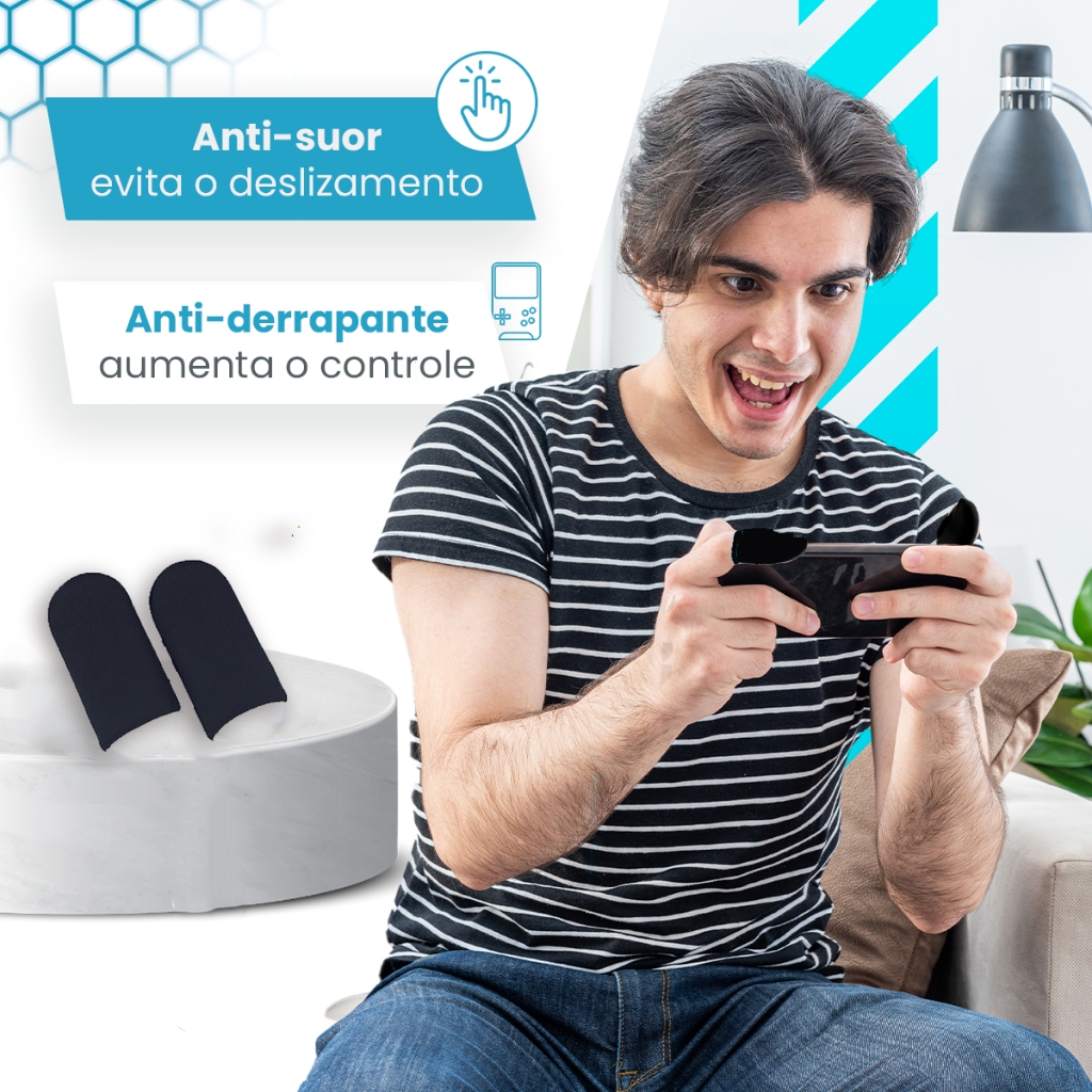 | Kit 1/3/5/7/9 Luvas de Dedo Gamer Anti-Suor para Celular Jogos Free... este produto | R$ 14,17 | 72% | 5.0/5 | — |