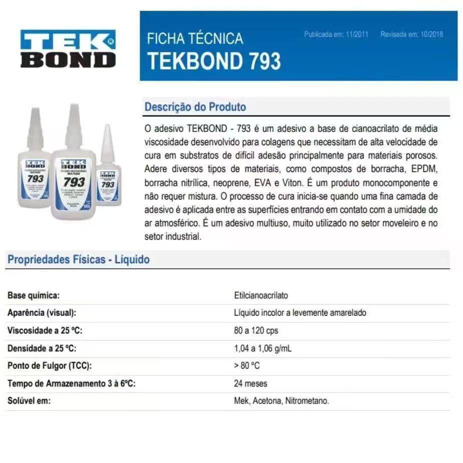 🔸 Características: Adesivo instantâneo 793 20 gramas Tekbond Adere diversos tipos de materiais, como compostos de borracha, EPDM, borracha nitrílica, neoprene, EVA e Viton. É um adesivo multiuso, muito utilizado no setor moveleiro e no setor industrial. É um produto monocomponente e não requer mistura. O processo de cura inicia-se quando uma fina camada de adesivo é aplicada entre as superfícies entrando em contato com a umidade do ar atmosférico. DADOS TÉCNICOS: Viscosidade (cP): 80 a 120 Temperatura de Trabalho (ºC): -55 a 80 Preenchimento de Folgas (mm): Até 0,10 Resistência ao Cisalhamento (Aço x Aço): = 100Kgf/cm2 Base química: Etilcianoacrilato Aparência (visual): Líquido incolor a levemente amarelado Aparência (visual): Sólido Incolor Cura Total: 24 horas Modelo: 793/20g Observação Importante: Selecione a opção desejada no carrinho de compras antes de finalizar a compra. Escolha a Quantidade desejada: Opção 1: 1 Peça Opção 2: 3 Peças Opção 3: 1 Kit(5 Peças) ❓FAQ❓ - O produto é novo ou original? ✅Sim, todos os nossos produtos são novos e originais. - Você tem entrega atempada? ✅Sim, todos os nossos produtos anunciados estão em estoque no Brasil para envio imediato. - Qual é o prazo para publicação? ✅ Após a confirmação da compra, enviaremos seu produto em até 24 horas. Se você tiver alguma dúvida sobre nossos produtos, sinta-se à vontade para entrar em contato conosco ~ Se você encontrar erros de envio / itens perdidos / quebrados / recebidos ao cancelar seu pedido, sempre recomendamos que você entre em contato conosco diretamente antes da pequena estrela do bate-papo :)