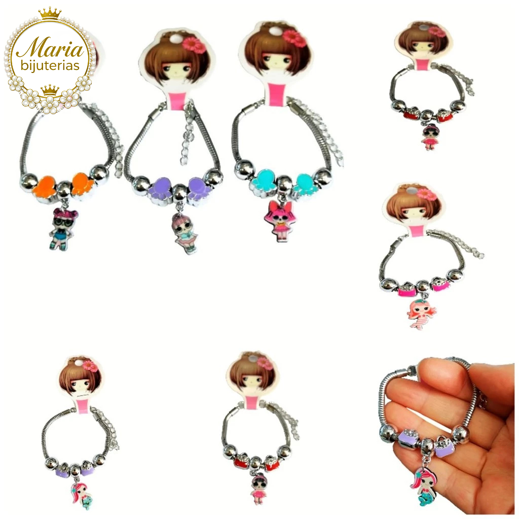 | kit 1/3/6 Pulseira infantil Prateada com Pingente boneca/fruta/ani... este produto | R$ 8,99 | 31% | 4.9/5 | 22 |