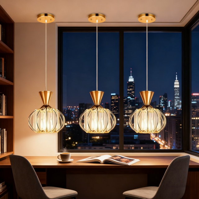 KIT 1-3 Lâmpada De Teto Leve Lustre De Cristal De Metal Nórdico Simples Bivolt Luz 3 Cores