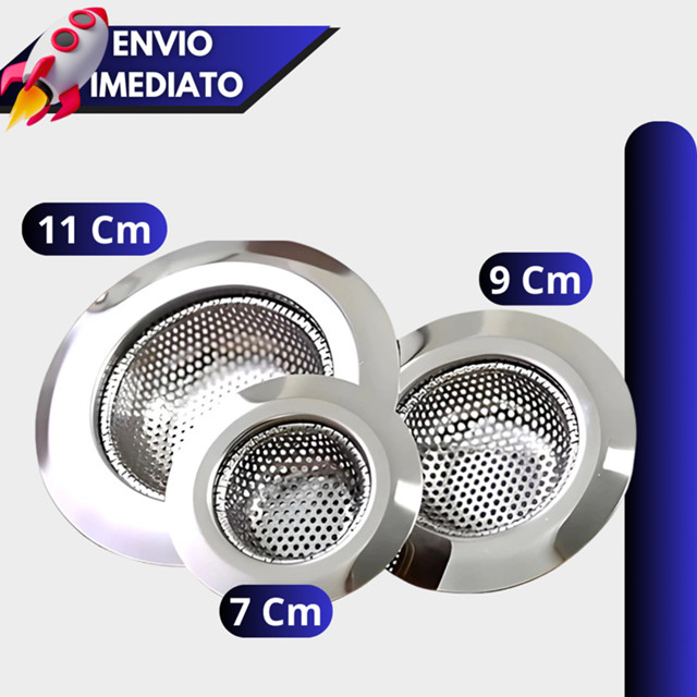 Kit 1/3 Ralos de Pia Aço Inox 11cm, 9cm e 7cm ou unitário – Protetores para Cuba de Cozinha