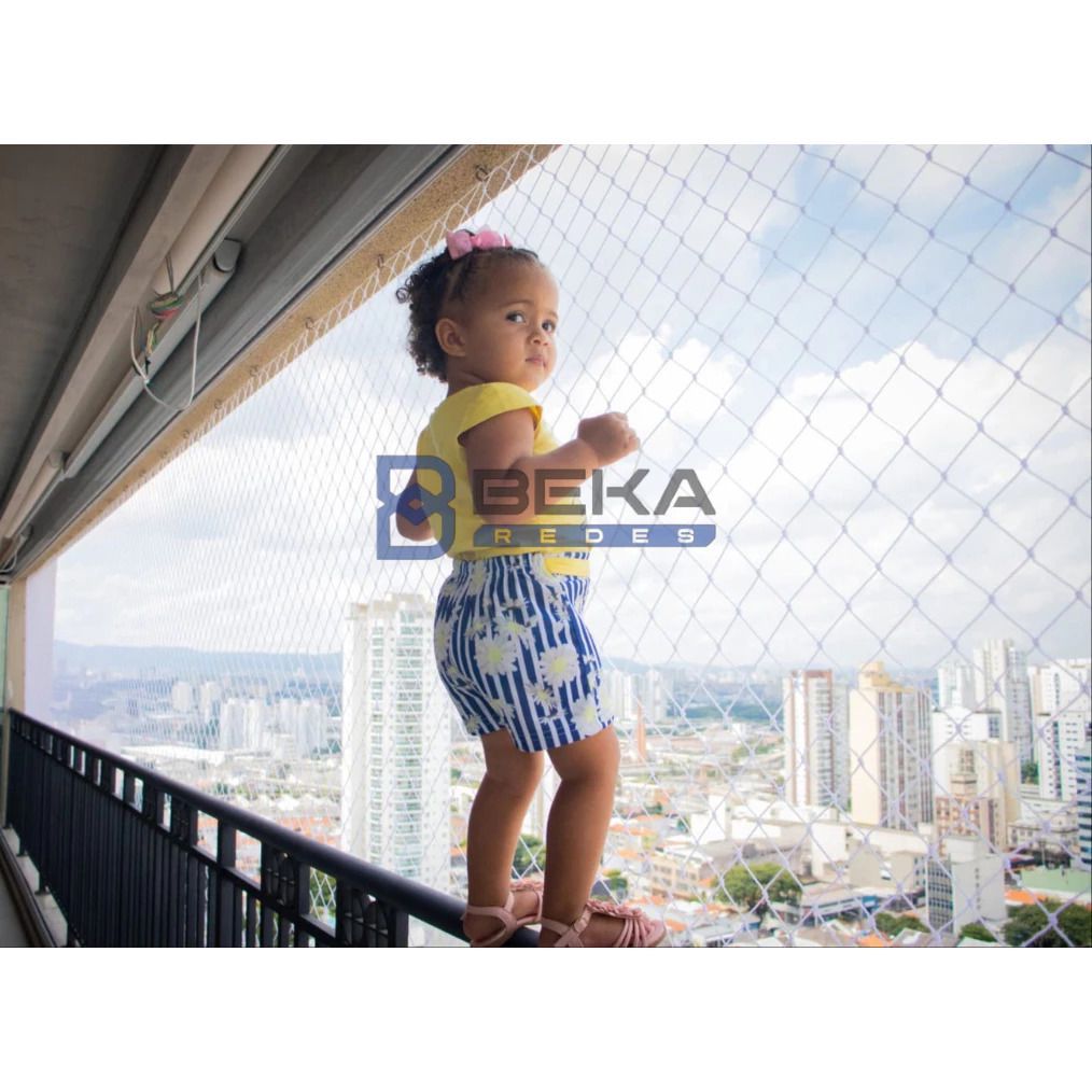 KIT COMPLETO INCLUI: 1 Rede de Proteção sob medida; Ganchos; Buchas; Corda. NÃO É O TAMANHO QUE VOCÊ PRECISA? Sem problemas! Trabalhamos com redes personalizadas. Basta informar as dimensões de comprimento e largura, e faremos um orçamento imediato para você. BENEFÍCIOS DAS NOSSAS REDES DE PROTEÇÃO: Nossa rede é sinônimo de segurança e durabilidade, sendo a escolha ideal para proteger seu espaço. Desenvolvidas para diferentes tipos de ambientes, as Redes de Proteção da Beka Redes são extremamente resistentes e confiáveis, fabricadas com fio 100% polietileno e tratadas com proteção UV e antioxidante, garantindo maior vida útil. Indicadas para prevenir quedas de adultos, idosos, crianças e animais de estimação. POSSÍVEIS APLICAÇÕES: Janelas; Sacadas; Piscinas; Quintais; Fechamento de quadras esportivas; Divisórias de ambientes; E muito mais! ESPECIFICAÇÕES TÉCNICAS: Fabricadas com fio de polietileno de alta tenacidade, importado e produzido de acordo com normas técnicas europeias, trançado com nó em máquinas de alta tecnologia alemã, o que confere maior resistência; Material isolante, não conduz eletricidade e é resistente à corrosão; Certificada e testada pelo Instituto Falcão Bauer; Resistência ao sol e chuva, devido ao tratamento UV e antioxidante; Espessura do fio: 2,5 mm; Capacidade de carga: 500 kg/m²; Cores disponíveis: Branca ou Preta; Formato da malha: losango; Garantia: Testado e aprovado pelo Instituto Falcão Bauer; Caso tenha dúvidas, nossa equipe está à disposição para auxiliar na compra ou instalação da sua Rede de Proteção. Beka Redes – Segurança e qualidade para você e sua família