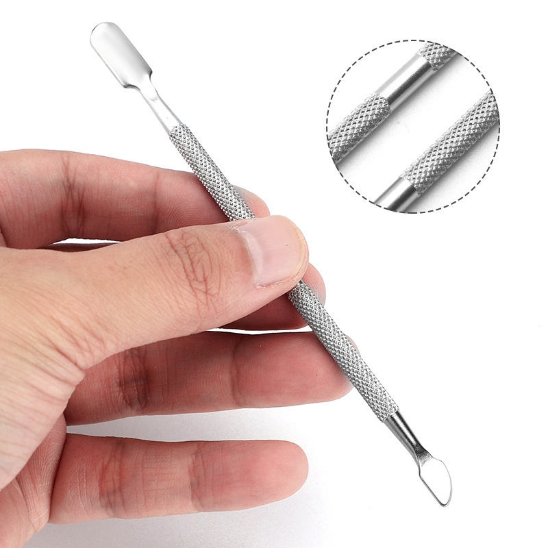 Kit 1/6 Espátula Dupla Empurrador Inox Profissional Manicure e Pedicuro