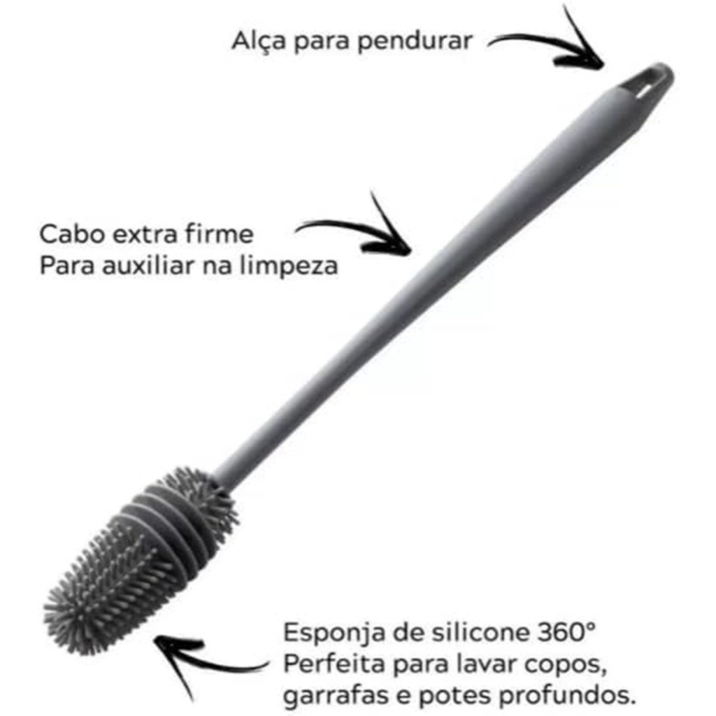 🧼 Escova de Silicone Multiuso para Lavar Garrafas, Mamadeiras, Copos e Taças Facilite a limpeza do dia a dia com a Escova de Silicone Multiuso, perfeita para higienizar garrafas, mamadeiras, copos, taças, potes de vidro e muito mais! Desenvolvida para alcançar áreas difíceis, ela proporciona limpeza eficiente, prática e segura, sem danificar superfícies delicadas. Fabricada com cerdas de silicone macio e resistente, remove resíduos com facilidade sem arranhar. Seu cabo longo e anatômico permite alcançar o fundo de garrafas e recipientes altos, garantindo uma higienização completa. Ideal para uso na cozinha, limpeza de utensílios, garrafas de água, copos altos, taças e mamadeiras. ✨ Principais Benefícios: ✔ Cerdas de silicone macio que não arranham ✔ Limpeza profunda em garrafas, copos e recipientes estreitos ✔ Cabo longo e anatômico para maior alcance ✔ Material durável e fácil de lavar ✔ Design higiênico que não acumula resíduos ✔ Furo no cabo para pendurar e facilitar o armazenamento 📏 Dimensões Aproximadas: • Altura da escova: 3 cm • Largura: 4 cm • Comprimento total: 33 cm 📦 Conteúdo da Embalagem: • 1x Escova de Silicone Multiuso 💡 Praticidade e eficiência para manter seus utensílios sempre limpos! Garanta já a sua e torne a limpeza muito mais fácil no seu dia a dia. 🚀