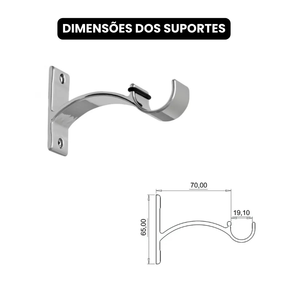 Kit 1 a 4m | Varão 19mm Luxo Simples para Varão Cortina de Alumínio =============== VANTAGENS: • FÁCIL INSTALAÇÃO • DESIGN HARMONIOSO • GRANDE RESISTÊNCIA E QUALIDADE • FABRICADO EM ALUMÍNIO PURO =============== ESPECIFICAÇÕES DO SUPORTE: LARGURA: 19mm ALTURA: 14cm =============== CONTEM: VARÃO SUPORTE DE PAREDE 19MM BUCHAS PARAFUSOS PONTEIRAS EMENDA (PARA VARÕES ACIMA DE 2M) *Nossos varões vão divididos em 1m pois é a medida máxima permitida na shopee, mas isso não influencia na qualidade! =============== Se ficou com alguma dúvida nos mande uma pergunta no campo abaixo que responderemos o mais rápido possível! Kit 1 a 4m | Varão 19mm Luxo Simples para Varão Cortina de Alumínio! Estoque limitado.