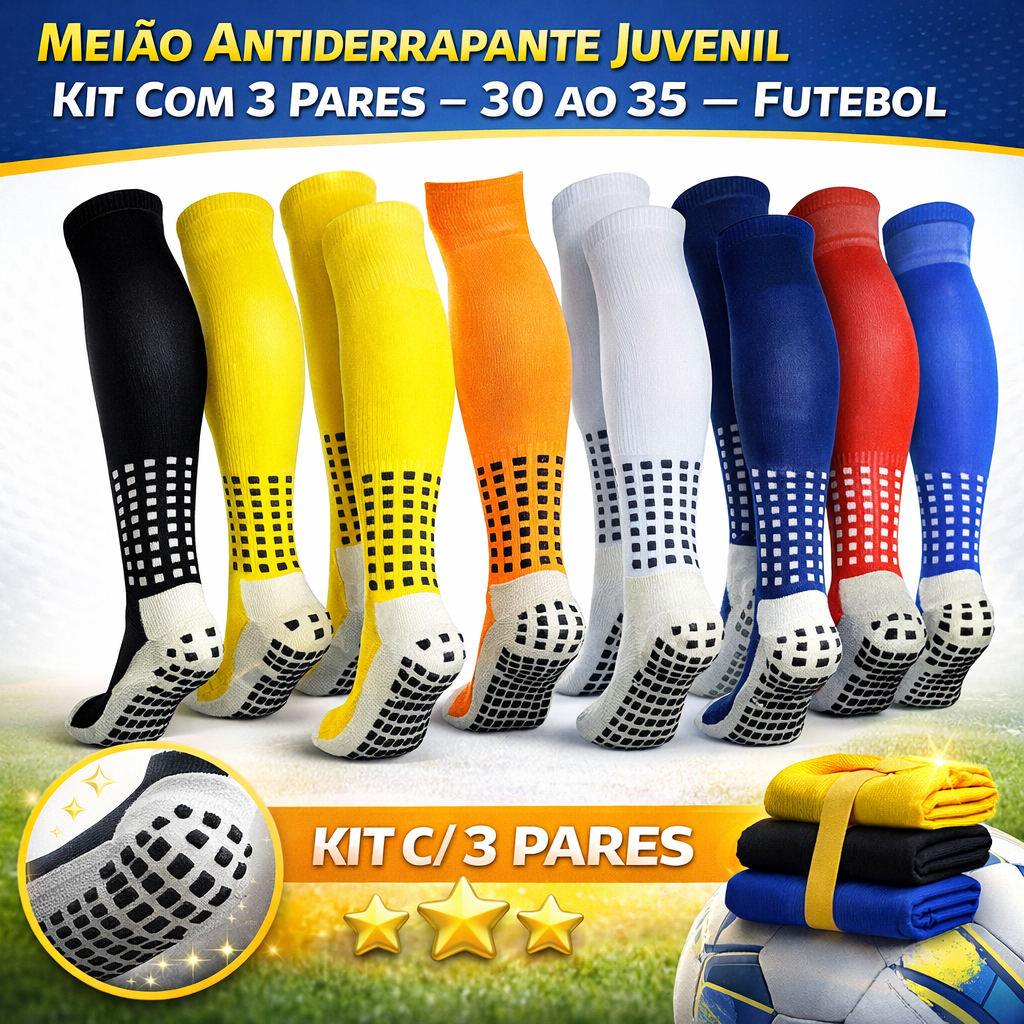 Kit 1 a 6 Meião Futebol Juvenil Infantil Antiderrapante Futsal Emborrachado Respirável Preto Branco