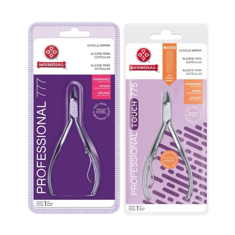 Kit 1 Alicate Cutícula Mundial Inox 777 + 1 Alicate Cutícula Mundial 775 Touch Manicure Unhas Aço Inoxidável