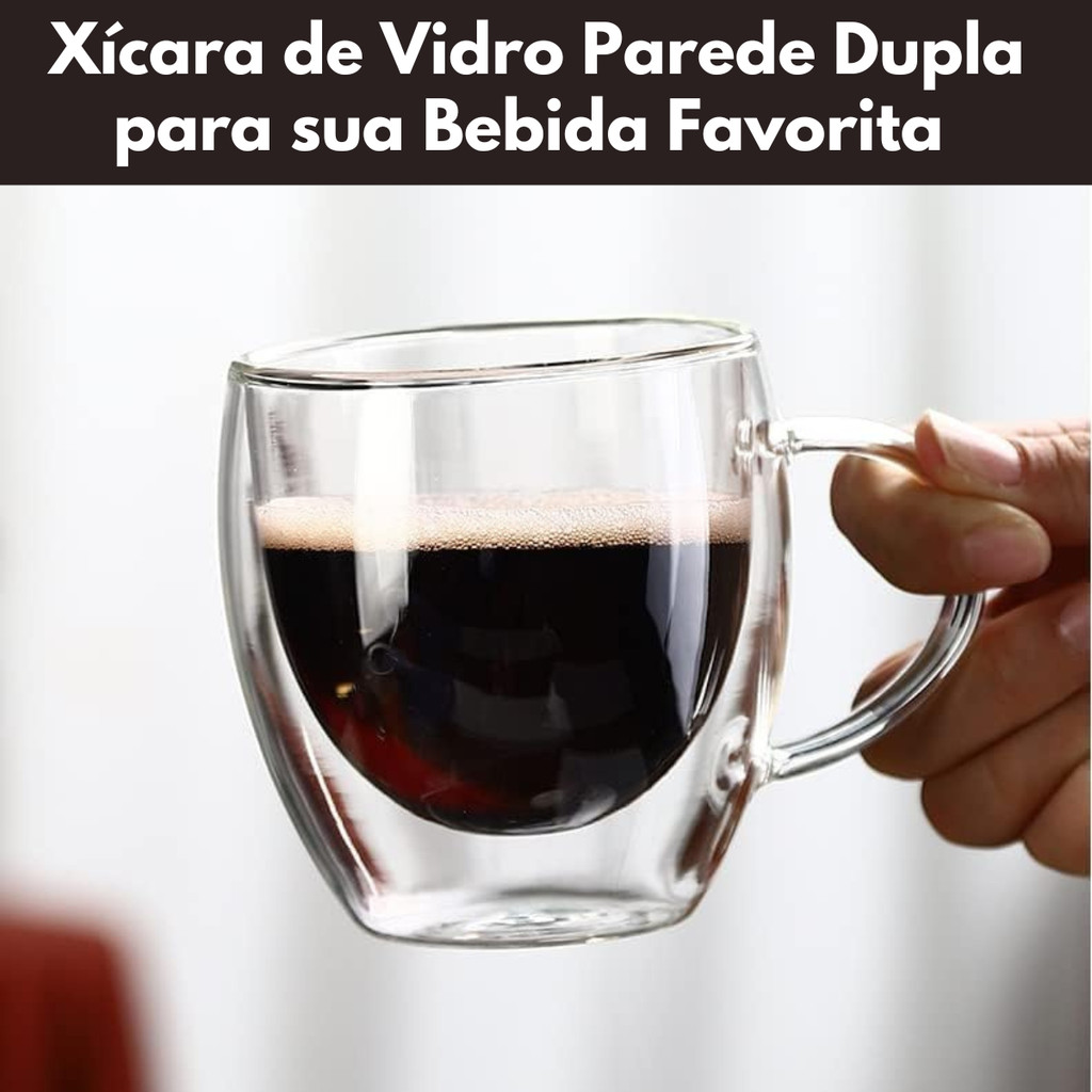 Kit 1 até 4 Canecas de Vidro Borossilicato Xicara Parede Dupla 80 ml Café Chá Sofisticada Dolce Gusto