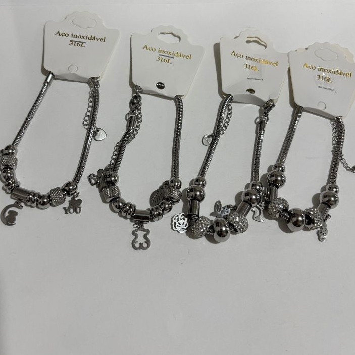 Kit 1 ate 6 Unidades Pulseira Com Berloque Aço Inoxidável