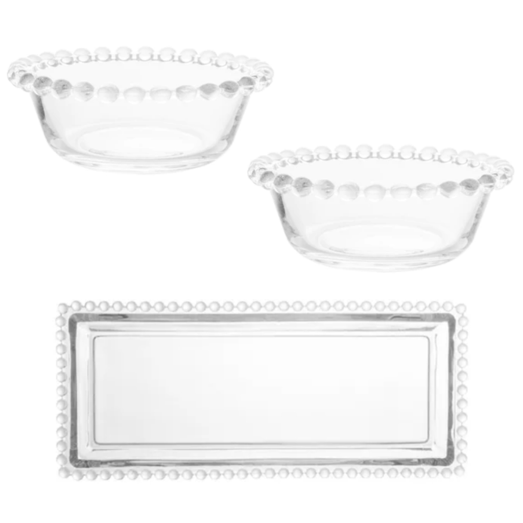 Qual o preço de kit 1 bandeja retangular com borda de bolinha 24x12 cm 1 travessa oval borda de bolinha 24x12 cm material (acrílico)?