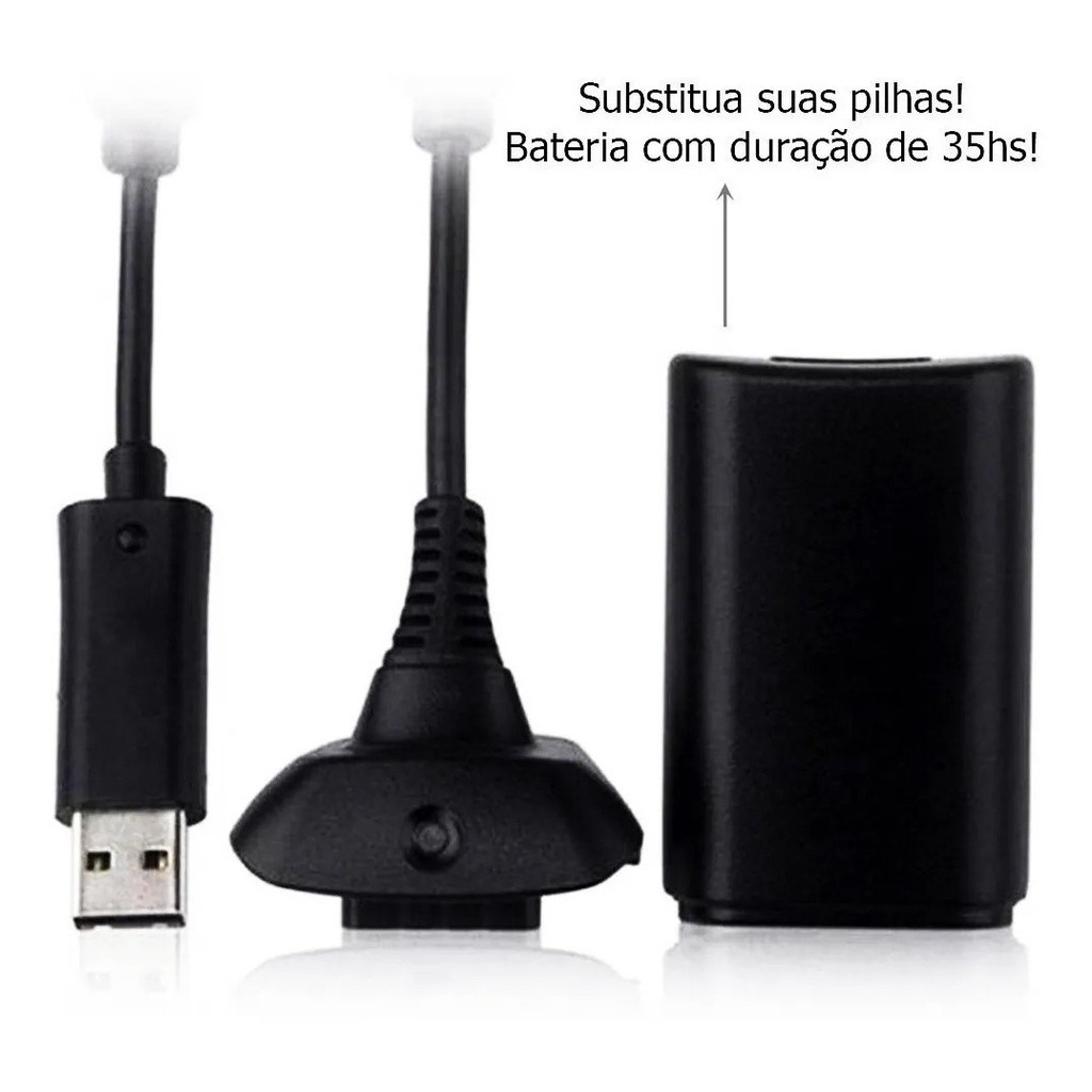 Kit 1 Bateria P/ Controle Xbox 360 + 1 Cabo Carregador 1.4m