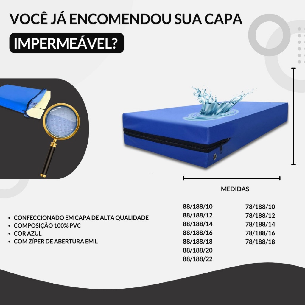 ****** SELECIONE A CAPA NAS MESMAS MEDIDAS DE SEU COLCHÃO ****** --------------------- ESSE KIT CONTÉM UMA FRONHA DE BRINDE------------------------------------- ****** FABRICAÇÃO PRÓPRIA, PRODUTO NACIONAL, NOSSO ENVIO É IMEDIATO ****** NÃO ACEITE IMITAÇÕES AS MELHORES CAPAS DE COLCHÃO SÃO HARPIA PX CONFECÇÕES Confeccionada em napa capa material de alta qualidade com forro interno de malha em poliéster que garante maior resistência a capa transformando o seu colchão comum em um colchão hospitalar totalmente higiênico e antialérgico. Possui zíper que acompanha a largura, garantindo que você coloque e retire facilmente. Com 7 medidas diferentes para o seu colchão. Você terá muito mais praticidade, pois com esta capa você protegerá seu colchão por completo podendo usar seu colchão dos dois lados. Para a correria do dia a dia é só passar um pano úmido com detergente neutro ou álcool e sua capa estará limpa e seca rapidamente. A capa para colchão pode ser usada em: - Hospitais - Clínicas - Hotéis - Motéis etc... - Pousadas - Alérgicos - Casas de repouso - Casas de Veraneio - Casas de praia - Casas de campo etc... ESPECIFICAÇÕES: =============== - Confeccionado em napa capa de Alta Qualidade - Composição 100% PVC - Cor Azul - Com zíper de abertura em L MEDIDAS: ======== - 88/188/10 - 88/188/12 - 88/188/14 - 88/188/16 - 88/188/18 - 88/188/20 - 88/188/22 - 78/188/10 - 78/188/12 - 78/188/14 - 78/188/16 - 78/188/18 ***** (caso tenha alguma dúvida sobre tamanhos utilize o campo perguntas para tirar suas dúvidas) ***** Atenção!!! Um Produto De Alta Qualidade.