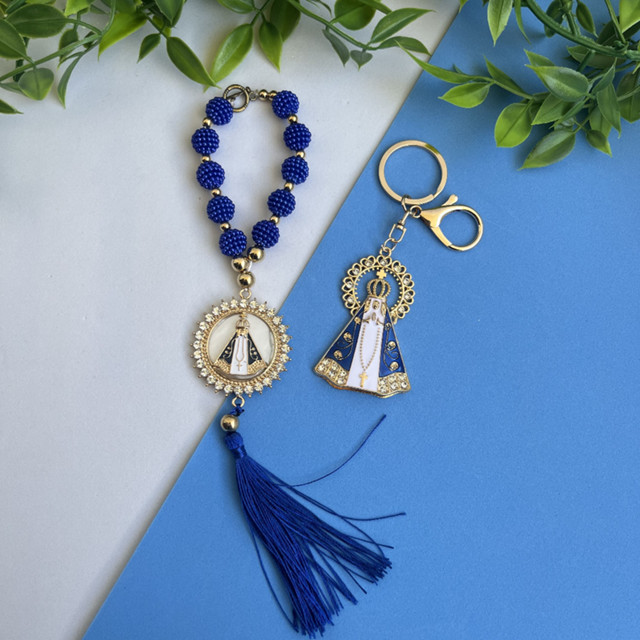 KIT 1 Chaveiro + 1 Terço Dezena de Nossa Senhora Aparecida Azul